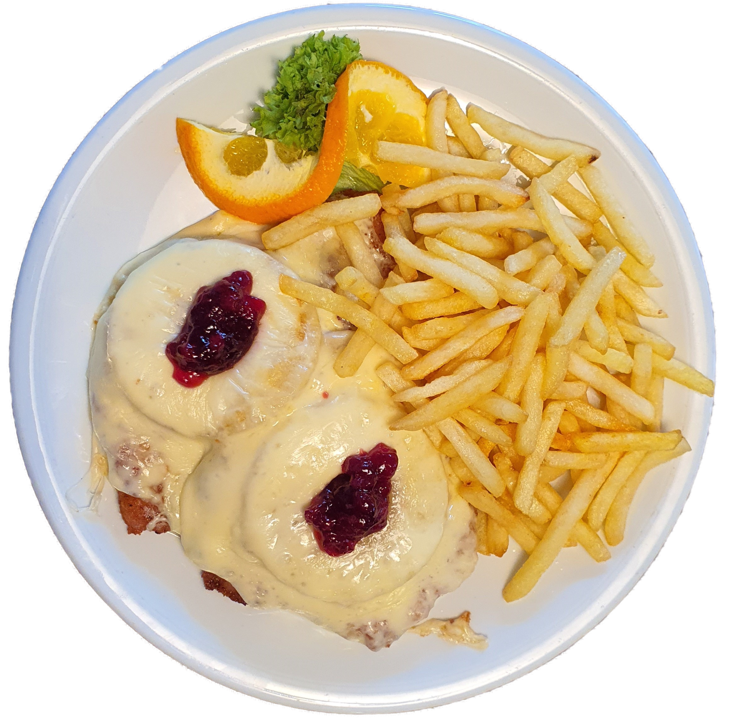 Schnitzel "Hawaii" mit Pommes Frites & Beilagensalat